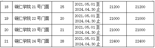 1.拍品1至21號標的位于銅仁市清水大道銅仁學院附中旁,面積7——28㎡,租賃期3年(2021.05.01至2024.04.30止),交通便利,人流量大。