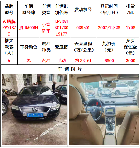 本次拍賣會(huì)的拍賣標(biāo)的其中5輛車,分別為邁騰牌FV7187T小型轎車一輛、豐田牌GTM7200GB-NAV1小型轎車一輛、捷達(dá)牌FV7160GiF E3小型轎車一輛、帕薩特牌SVW7203FPi小型轎車一輛、帕薩特牌SVW7203FPi小型轎車一輛,為打包整體拍賣,不作拆分,整體起拍價(jià):42400元,且只對(duì)標(biāo)的現(xiàn)狀進(jìn)行拍賣,不作任何質(zhì)量擔(dān)保。