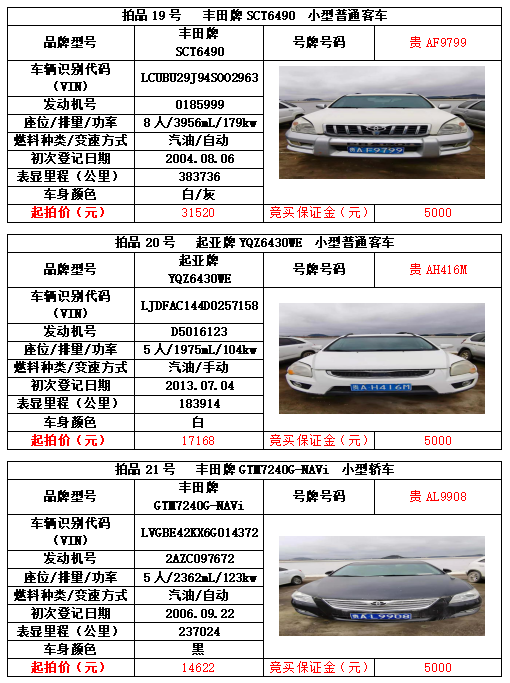 別克牌、豐田牌、指南者牌、索蘭托牌、黃海牌、森林人牌、普瑞維亞牌、三菱牌、起亞牌、五十鈴牌等共計(jì)21輛車(chē)。