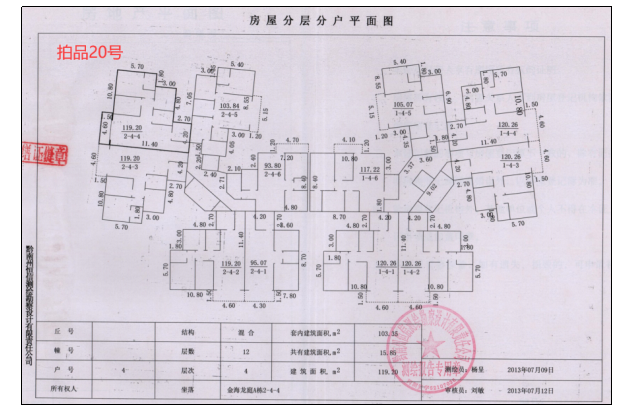 1.標(biāo)的位于獨(dú)山縣百泉鎮(zhèn)虹橋路金海龍庭A棟2單元,于2013年建成,建筑面積均為119.2㎡(套內(nèi)面積103.35㎡),建筑物外墻刷墻漆,室內(nèi)客廳鋪地磚,墻面刷白漆,臥室鋪木地板,廚房衛(wèi)生間地面鋪地磚,安裝鋁合金窗,木包門。臨近古鳳博物館,小上?;▓@,生活配套設(shè)施齊全,交通通達(dá)度較好,有多條公交及出租車通達(dá),供電、供水、排水、通訊均能滿足使用要求。其中拍品19號不動產(chǎn)權(quán)證號:獨(dú)房權(quán)證獨(dú)山字第2015008號;拍品20號不動產(chǎn)權(quán)證號:獨(dú)房權(quán)證獨(dú)山字第2015009號;拍品21號不動產(chǎn)權(quán)證號:獨(dú)房權(quán)證獨(dú)山字第2015007號。