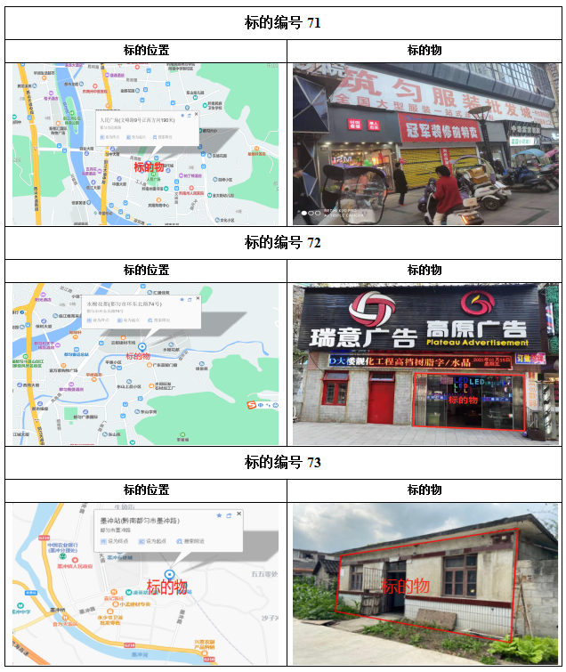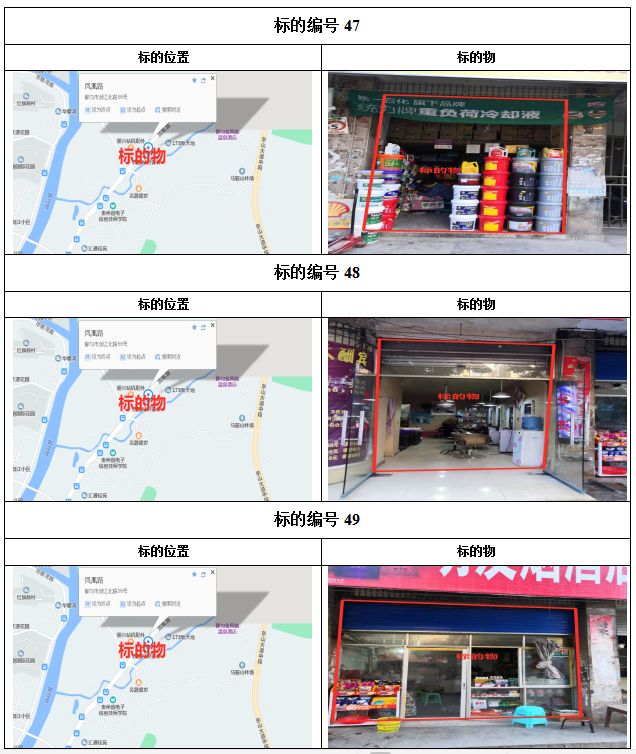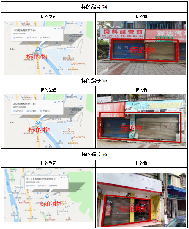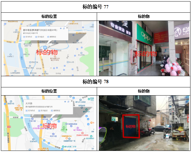 2021年1月28日下午14:00拍賣標的共計38個標的,其中:41—72號標的目前均為租賃狀態(tài),如承租人參與競租,其享有同等價位優(yōu)先購買權(quán),其余73—78標的為閑置狀態(tài)。