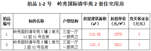 1、關(guān)嶺縣嶺秀國際2套住宅房產(chǎn),建筑面積:118.88—121.9㎡,起拍價(jià):2811—2878元/㎡;