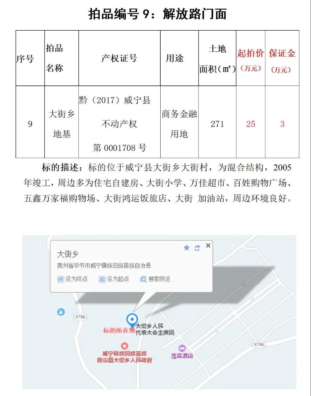 受委托,我公司定于2021年6月 4日(星期五)下午14:30于威寧縣濱海大道草海大酒店公開拍賣以下標的: