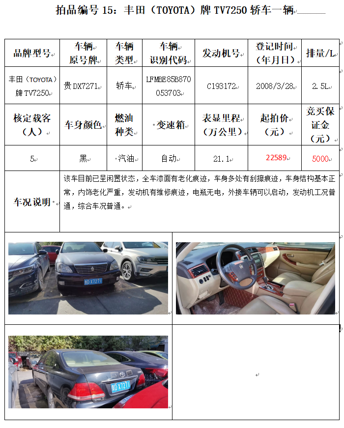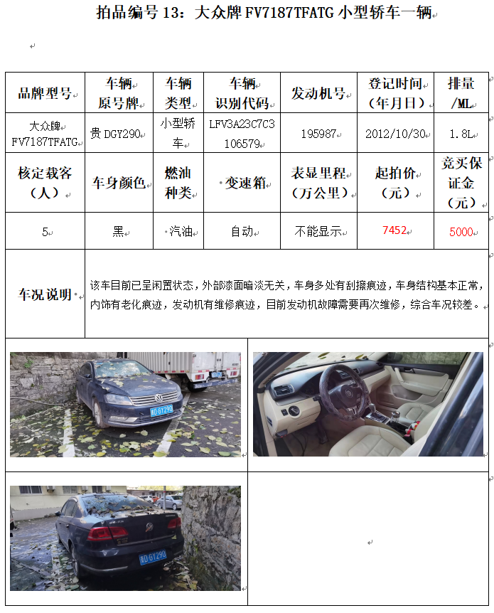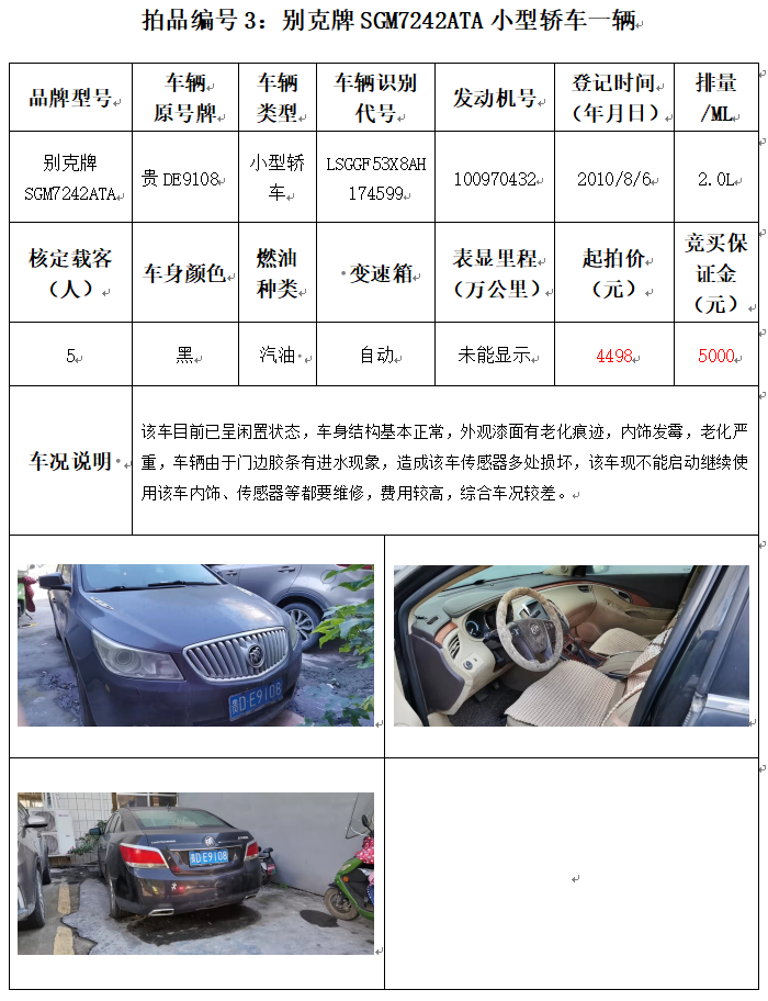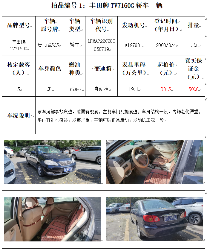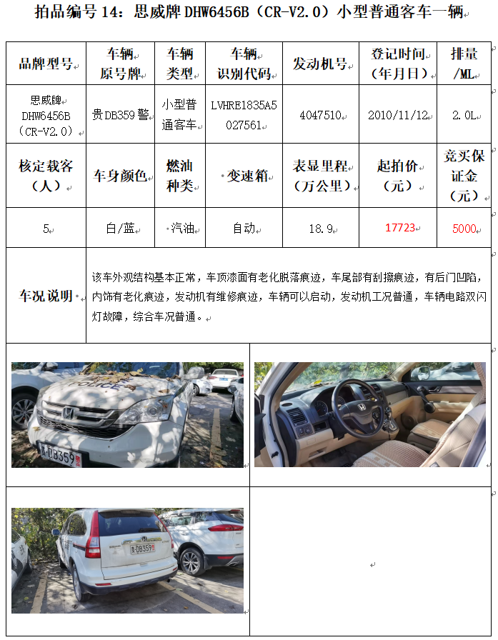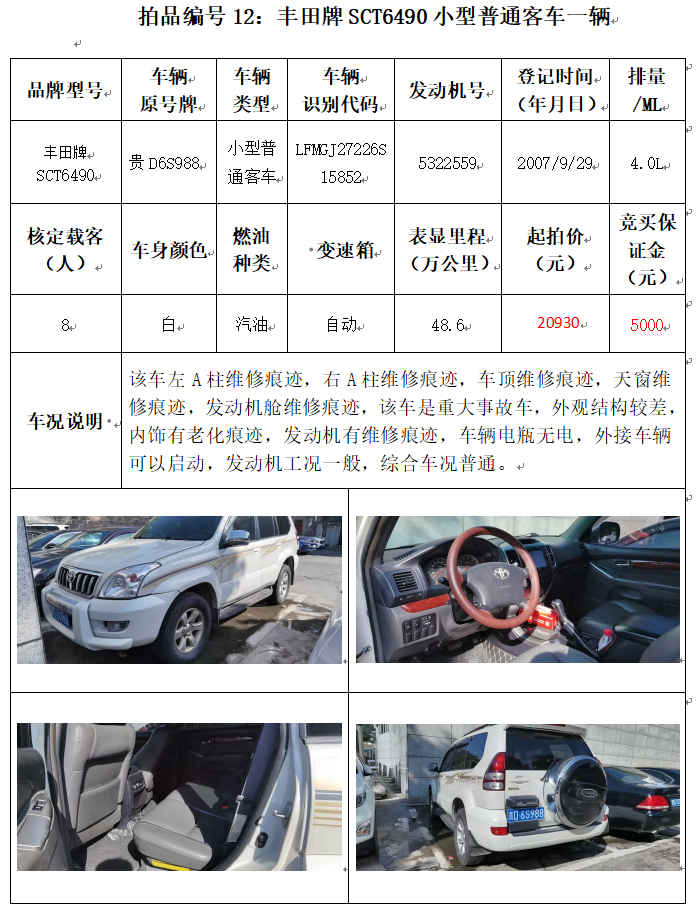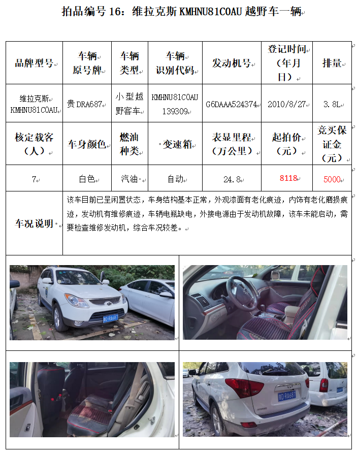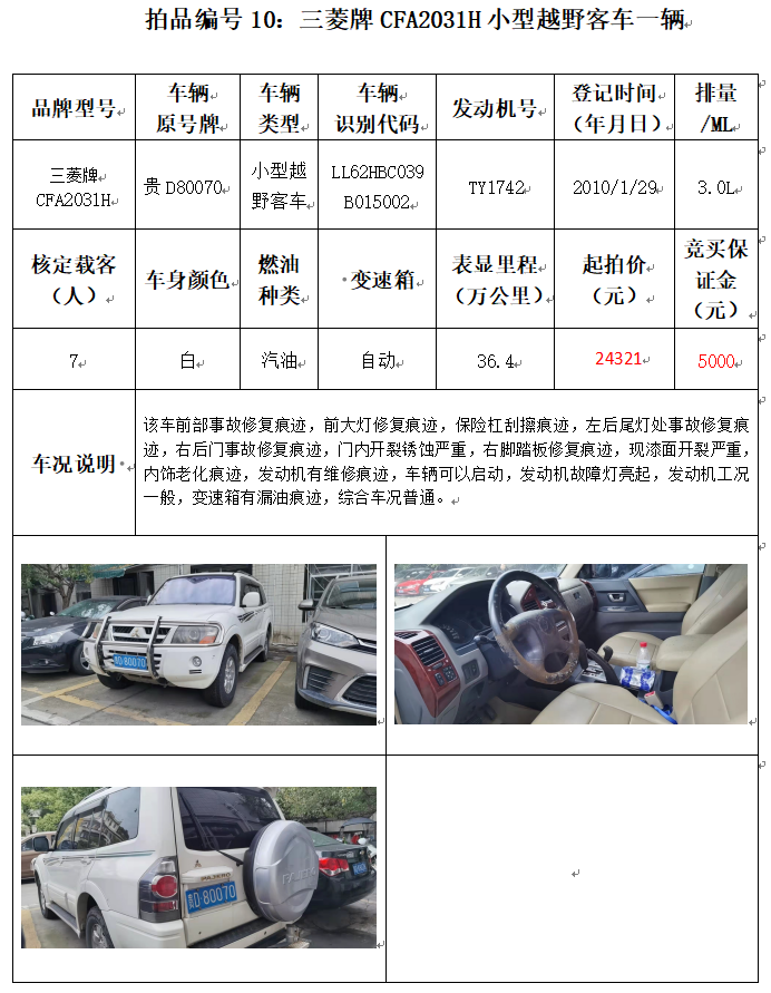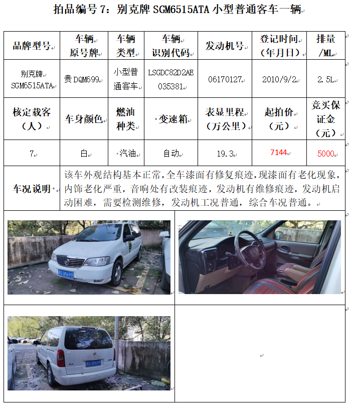 受委托,本公司定于2021年12月10日(星期五)下午14:00時,在銅仁市碧江區(qū)川硐教育園區(qū)誠信路銅仁市公共資源交易中心開標六室(拍賣大廳)公開拍賣以下車輛: