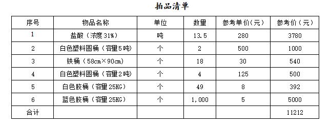 2、拍賣成交后買受人需要到標(biāo)的物所在地提取標(biāo)的物,買受人在提取和運(yùn)輸鹽酸時(shí),須按照國家法律、法規(guī)、行政規(guī)章制度的相關(guān)標(biāo)準(zhǔn)進(jìn)行提貨和運(yùn)輸。提取和運(yùn)輸所有費(fèi)用由買受人自行承擔(dān)。