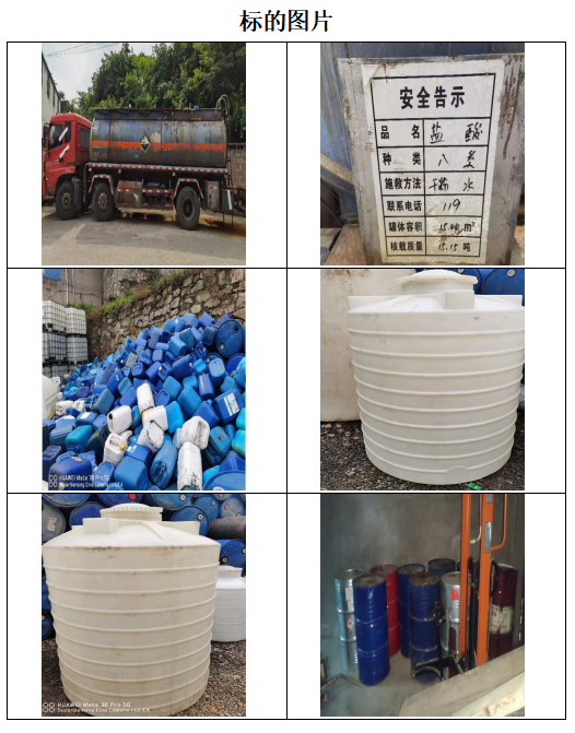 該批標(biāo)的為整體拍賣,鹽酸是氯化氫(HCl)的水溶液[2],屬于一元無機(jī)強(qiáng)酸,工業(yè)用途廣泛。鹽酸的性狀為無色透明的液體,有強(qiáng)烈的刺鼻氣味,具有較高的腐蝕性??捎糜诜治龌瘜W(xué)、酸洗鋼材、制有機(jī)化合物、制無機(jī)化合物、控制pH等。